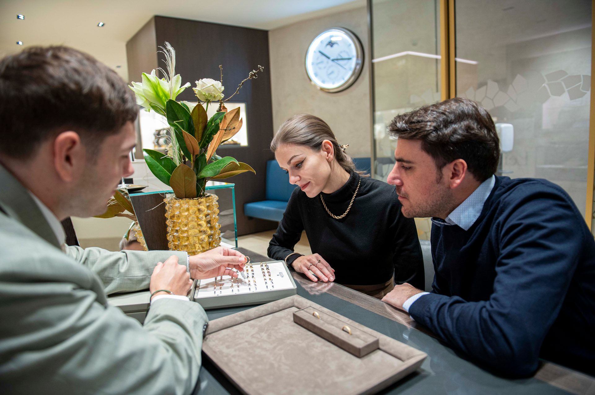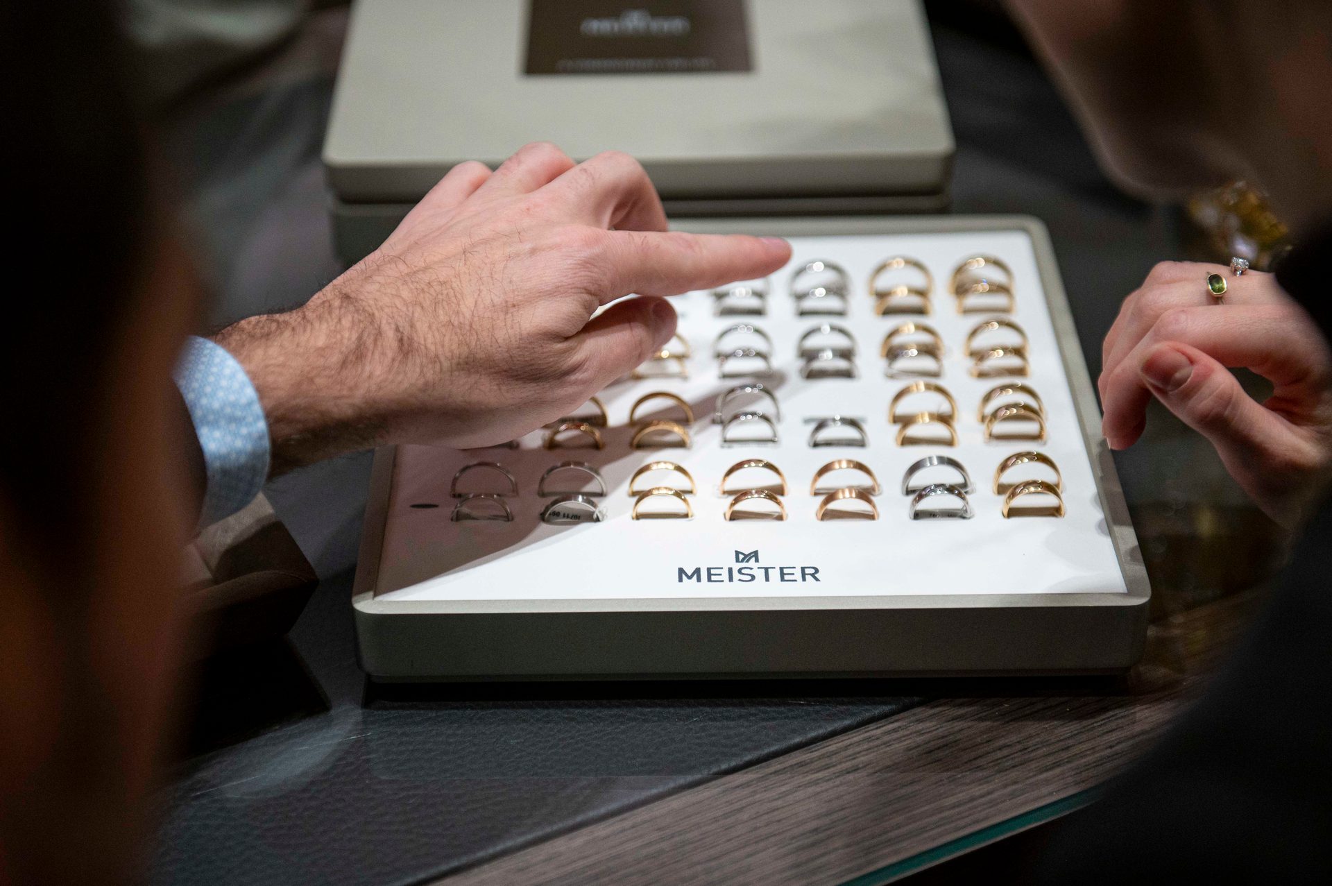 „Viele Kunden wissen im Gegensatz zu Marco und Victoria noch nicht wirklich, wie der Trauring aussehen soll, wenn sie zu uns ins Geschäft kommen. Sie brauchen unsere Beratung“, erzählt Simon. Ihnen legt er verschiedene Modelle vor, lässt sie probieren. „Dann weiß ich schon, in welche Richtung es geht“, sagt Simon Siess. Er rät beim Ringkauf darauf zu achten, dass die Diamanten hochwertig sind. Bei Gold zieht er 18 den 14 Karat vor. „Denn bei 14-karätigem Gold ist die Farbe einfach anders. 18 Karat ist hochwertiger.“ Gefragt sind derzeit Trauringe in Roségold, statt Weißgold wird eher Platin bevorzugt.