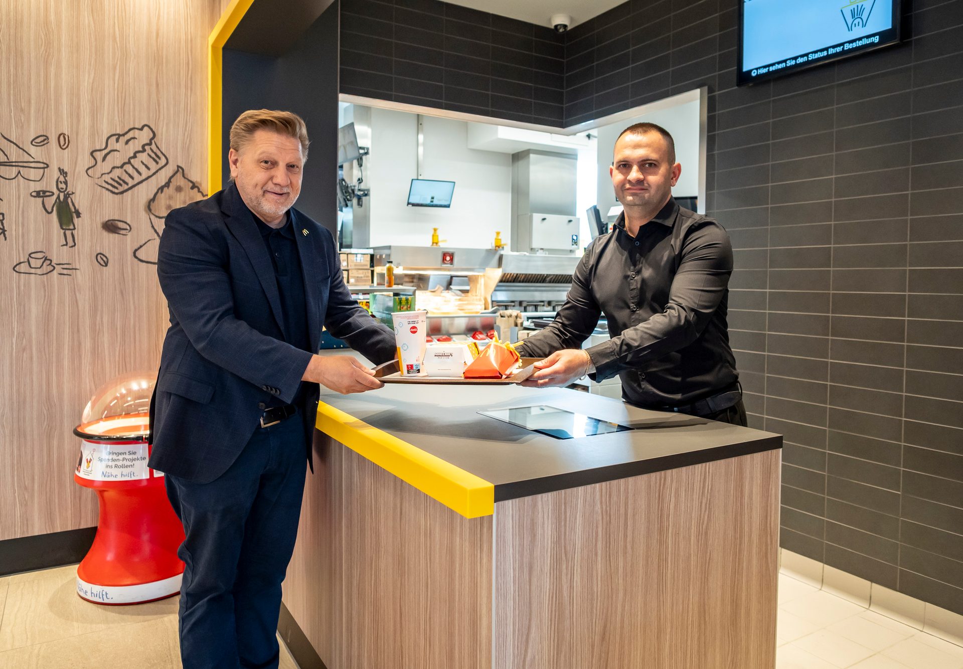 50 Mitarbeiter:innen sind am Standort Völs beschäftigt. Sie profitieren nun von kürzeren Wegen und von neuen Ruheorten für die Pause. Restaurantleiter Bashkim arbeitet schon seit 17 Jahren bei McDonald’s. In Völs macht ihm die Arbeit besonders Spaß. „Ich bin vom Arbeitsumfeld hier begeistert – und der Chef ist immer zur Stelle, wenn jemand Hilfe braucht. Das Team ist für mich wie meine zweite Familie.“ So geht es auch Kassiererin Evanthia: „Ich fühle mich sehr wohl in meinem Job und die Leute sind super.“
