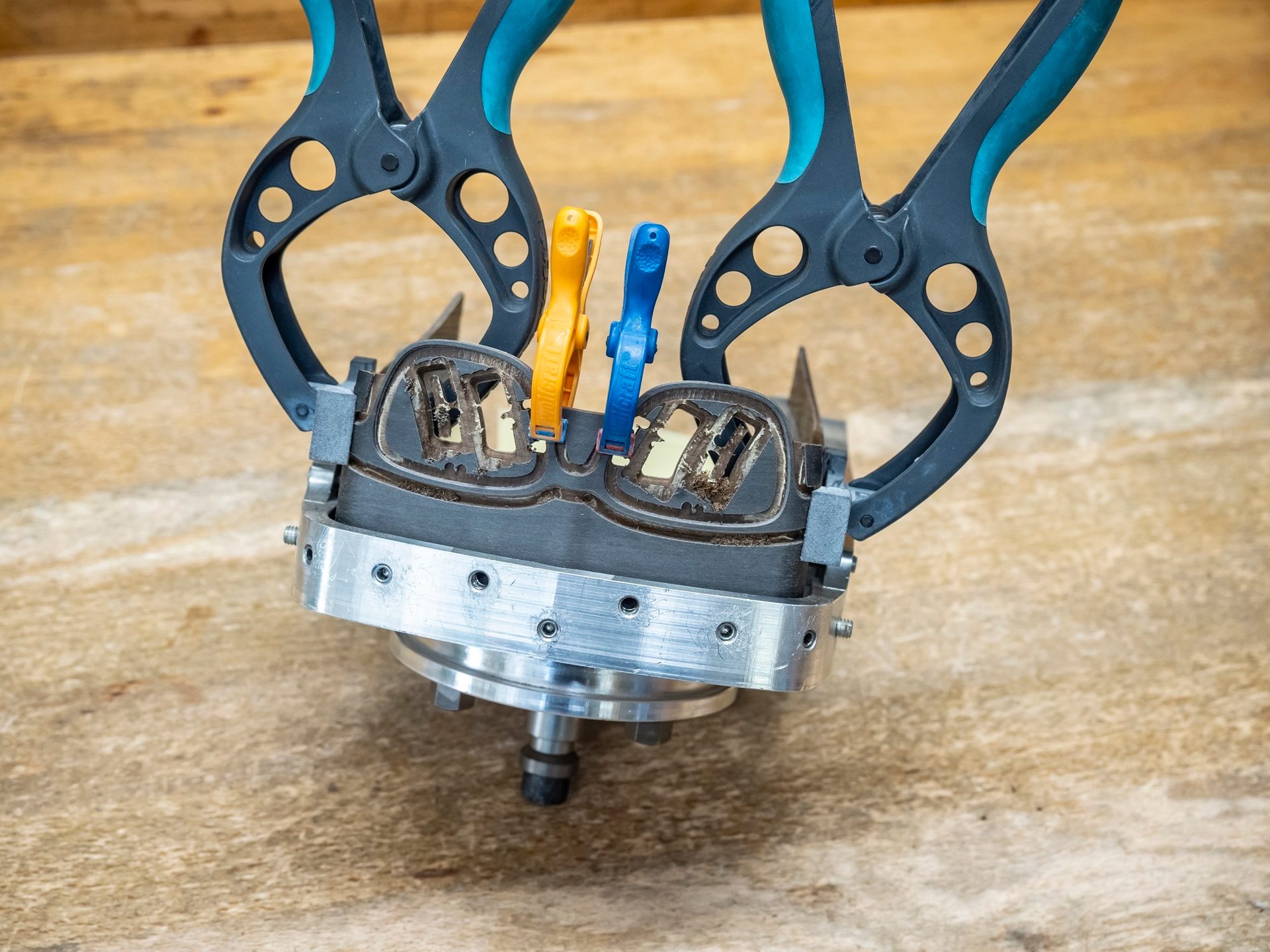 Der Raum, in dem sie produziert werden, erinnert an Weltraumforschung. Eine eigene Klimaanlage umsorgt die sachte bebende, mannshohe Maschine, in deren Gasatmosphäre Metallpulver zu filigranen Rahmen verschmelzt wird.